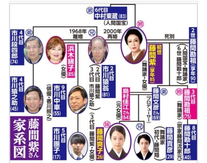 藤間紫さんには、2人の子供と3人の孫がいます。